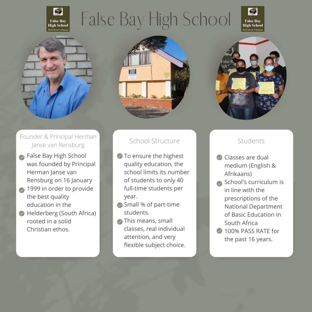 If you would like to register your child for possible admission to False Bay High School, please complete the procedure here. Please note that a non-refundable application fee is payable upon submission of the application form. Please note that the school requires written consent from both parents/guardians of a child wanting admission into False Bay High School.